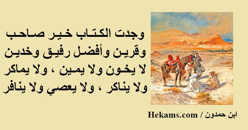 دخل أديب على الخليفة عبدالملك بن مروان فوجده يقرأ فقال له : يا أمير المؤمنين إن الكتاب أنبل جليس , وآنس أنيس , وأصدق صديق , وأحفظ رفيق , وأكرم مصاحب , وأفصح مخاطب , وأبلغ ناطق , وأكتم وامق (محب) , يورد إاليك ولا يصدر عنك , ويحكي لك , ولا يحكي عنك , إن أودعته سراً كتمه , وإن استحفظته علماً حفظه , وإن فاتحته فاتحك , وإن فاوضته فاوضك , وإن جاريته جاراك , ينشط بنشاطك , ويغتبط باغتباطك , ولا يخفي عنك ذكراً , ولا يفشي لك سراً , إن نشرته شهد , وإن طويته رقد , وخفيف المؤونة , كثير المعونة , حاضر كمعدوم , غائب كمعلوم , لا تتصنع له عند حضوره في خلوتك , ولا تحتشم له في حال وحدتك , في الليل نعم السمير , وفي النهار نعم المشير .. فقال عبدالملك بن مروان : لقد حببت اليّ الكتاب , وعظمتَّه في نفسى , وحسَّنته في عيني. - أنيس منصور