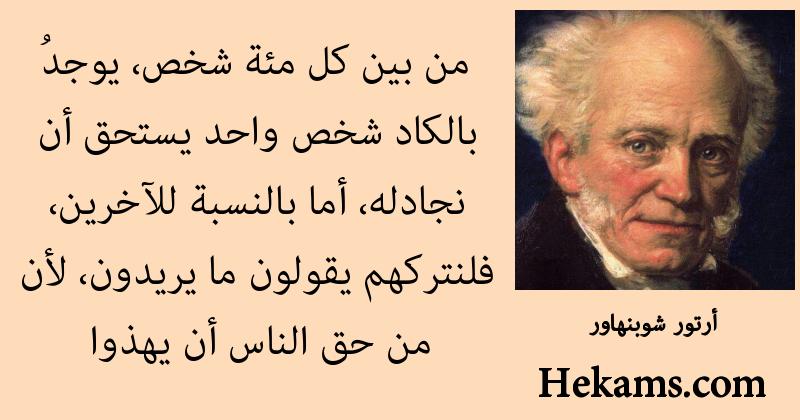 من بين كل مئة شخص، يوجدُ بالكاد شخص واحد يستحق أن نجادله، أما بالنسبة للآخرين، فلنتركهم يقولون ما يريدون، لأن من حق الناس أن يهذوا. - أرتور شوبنهاور