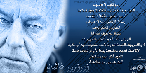 وسالت دماه وما كان فيها دمٌ ، هل لدى ذلك الجيش دمْ ؟ ألم تر كيف أغار على أهله كالذئاب ، وولَّى أمام العدا كالغنمْ ؟! - احمد مطر