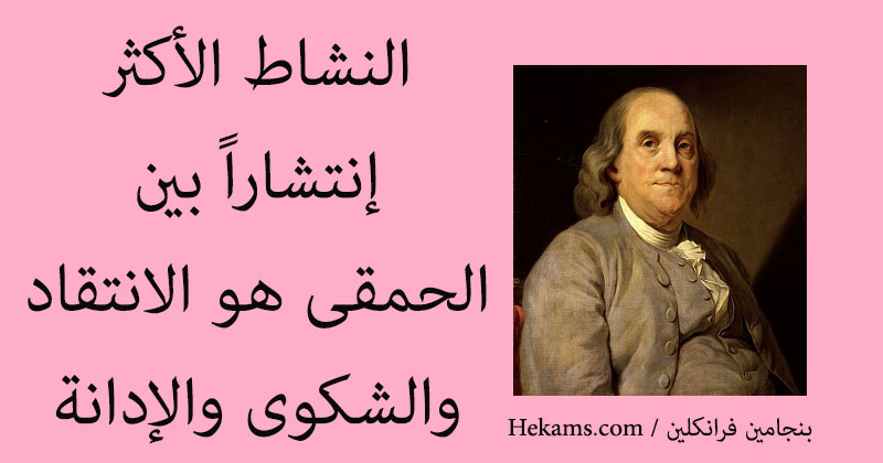 الإنتقاد والشكوى والإتهام ، هي النشاطات الأكثر انتشاراً بين الحمقى. - بنجامين فرانكلين