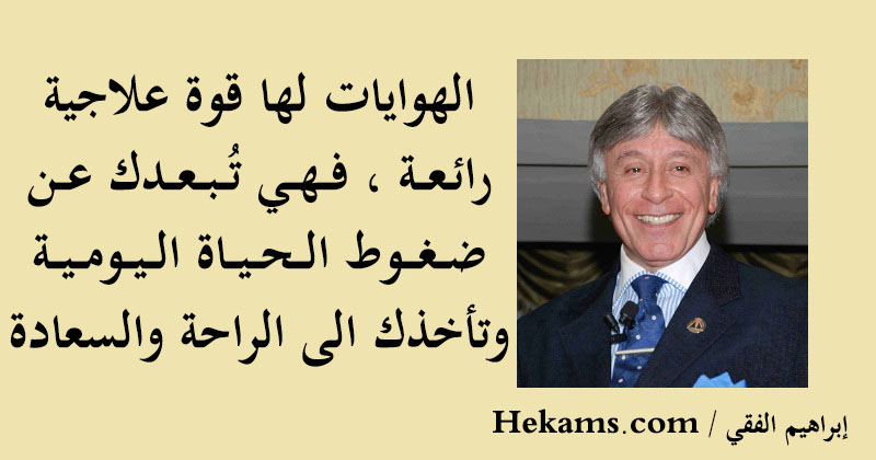 الهوايات لها قوة علاجية رائعة ، فهي تُبعدك عن ضغوط الحياة اليومية وتأخذك الى الراحة و السعادة. - إبراهيم الفقي