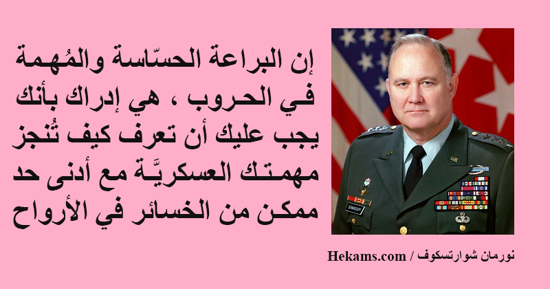 لكي تفهم بشاعة الحرب ، كُل ما عليك القيام به هو أخذ الجندي الأول الذي يموت بين ذراعيك ، ولديك ذلك الشعور العقيم بشكل رهيب بأنك لا تستطيع فعل أي شيء حيال ذلك ، عند ذلك تفهم رعب الحرب. - نورمان شوارتسكوف