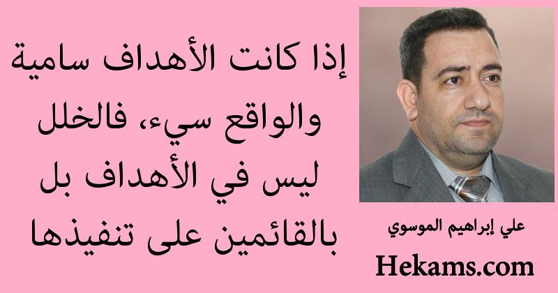 غالبية الأحزاب السياسية تمتلك أهدافاً سامية والتي تأسست بموجبها لكنها لا تمتلك فكراً ورؤية بناءة، ولهذا تميل للدكتاتورية في الحكم للتغطية على فشلها الفكري وتصبح الأهداف مجرد حبر على ورق. - علي إبراهيم الموسوي