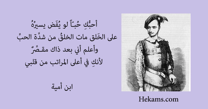 أحبُّكِ حُبـًّا لو يُفَض يسيرُهُ .. على الخَلق مات الخلقُ من شدَّة الحبِّ , وأعلم أني بعد ذاك مقـصِّرٌ .. لأنكِ في أعلى المراتب من قلبي. - ابن أمية