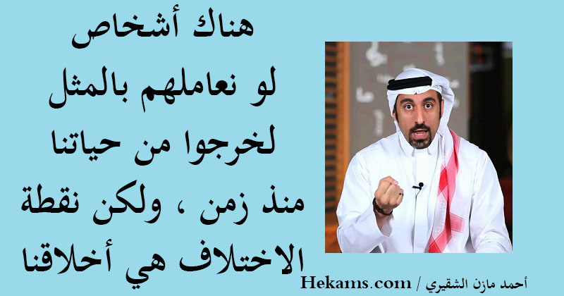 هناك أشخاص لو نعاملهم بالمثل لخرجوا من حياتنا منذ زمن ، ولكن نقطة الاختلاف هي أخلاقنا. - أحمد مازن الشقيري