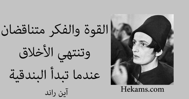 القوة والفكر متناقضان، وتنتهي الأخلاق عندما تبدأ البندقية. - آين راند