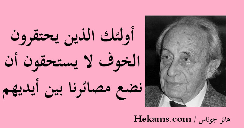 أولئك الذين يحتقرون الخوف لا يستحقون أن نضع مصائرنا بين أيديهم. - هانز جوناس