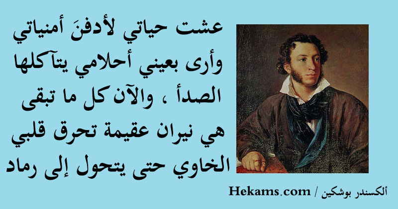 عشت حياتي لأدفنَ أمنياتي ، وأرى بعيني أحلامي يتآكلها الصدأ ، والآن كل ما تبقى هي نيران عقيمة تحرق قلبي الخاوي حتى يتحول إلى رماد. - ألكسندر بوشكين