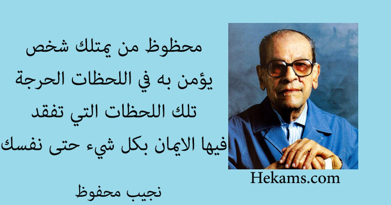 محظوظ من يمتلك شخص يؤمن به في اللحظات الحرجة ، تلك اللحظات التى تفقد فيها الايمان بكل شيء حتى نفسك. - نجيب محفوظ