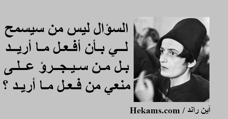 السؤال ليس من سيسمح لي بأن أفعل ما أريد، بل من سيجرؤ على منعي من فعل ما أريد ؟ - آين راند
