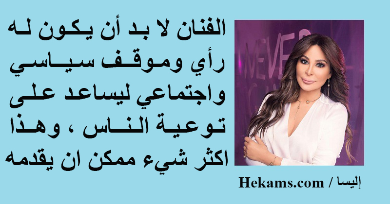 الفنان لا بد أن يكون له رأي وموقف سياسي واجتماعي ليساعد على توعية الناس ، وهذا اكثر شيء ممكن ان يقدمه. - إليسا