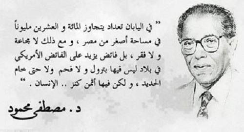 في اليابان تعداد يتجاوز المئة والعشرين مليوناً في مساحة أصغر من مصر , ومع ذلك لا مجاعة ولا فقر , بل فائض يزيد على الفائض الأمريكي في بلاد ليس فيها بترول ولا فحم ولا حتى خام الحديد , ولكن فيها أثمن كنز .. الإنسان. - مصطفى محمود